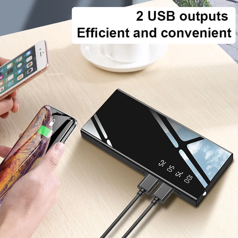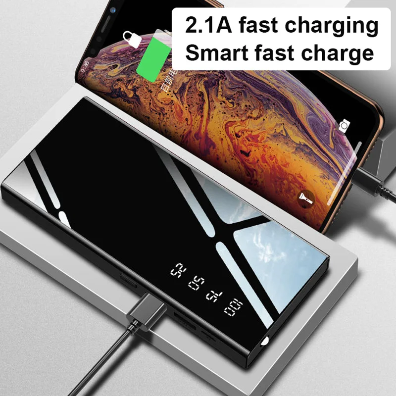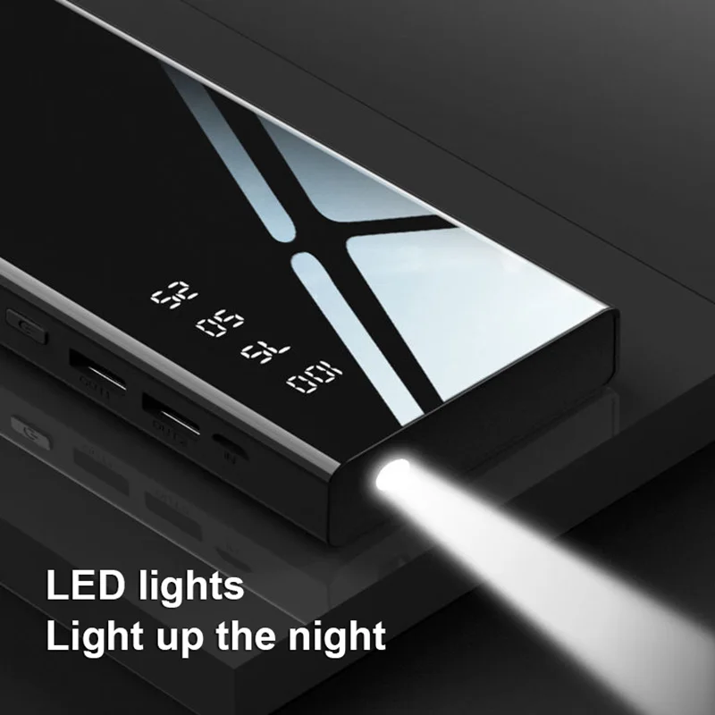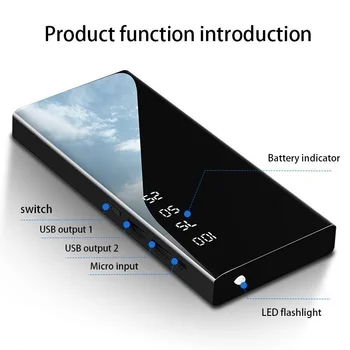 1.[Micro-USB Input Portable Charger]: Dual USB output, which can charge 2 devices at the same time, practical and convenient. 2.[Battery Pack With Full LCD Design]: Tell the remaining power all the time with mirror-like look and cellphone size. 3.[Power Pack's Smart Protection Technology]:Power Pack equips smart protection system,over charging,over voltage,over current,making charging safer. Capacity and Parameter Input: DC 5V 1A (Max) Output1: DC 5V 2.1A (Max) Output2: DC 5V 1A (Max) Length * Width * Height : 140*62*22 mm LCD digital display: The remaining power is clear at a glance. Easy to operate: Only one power button needed to be press when the information of LCD needed to be seen. Led flashlight: Double-click the power switch to turn it on/off. Packing: 1 x Power Bank 1 x User Manual 1 x Packing box 1 x Micro USB cable 1 x USB light